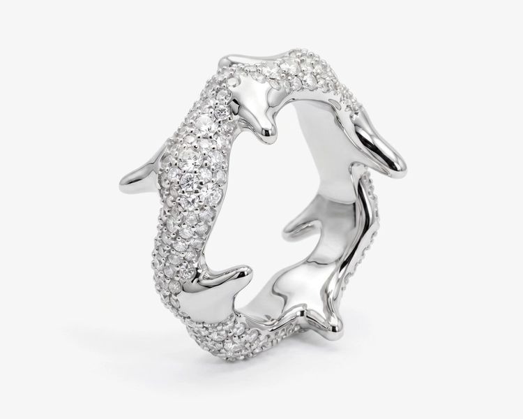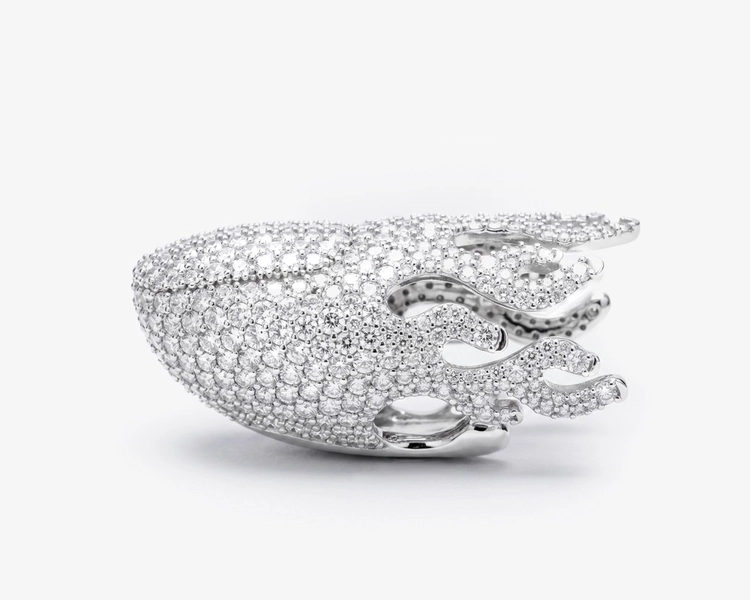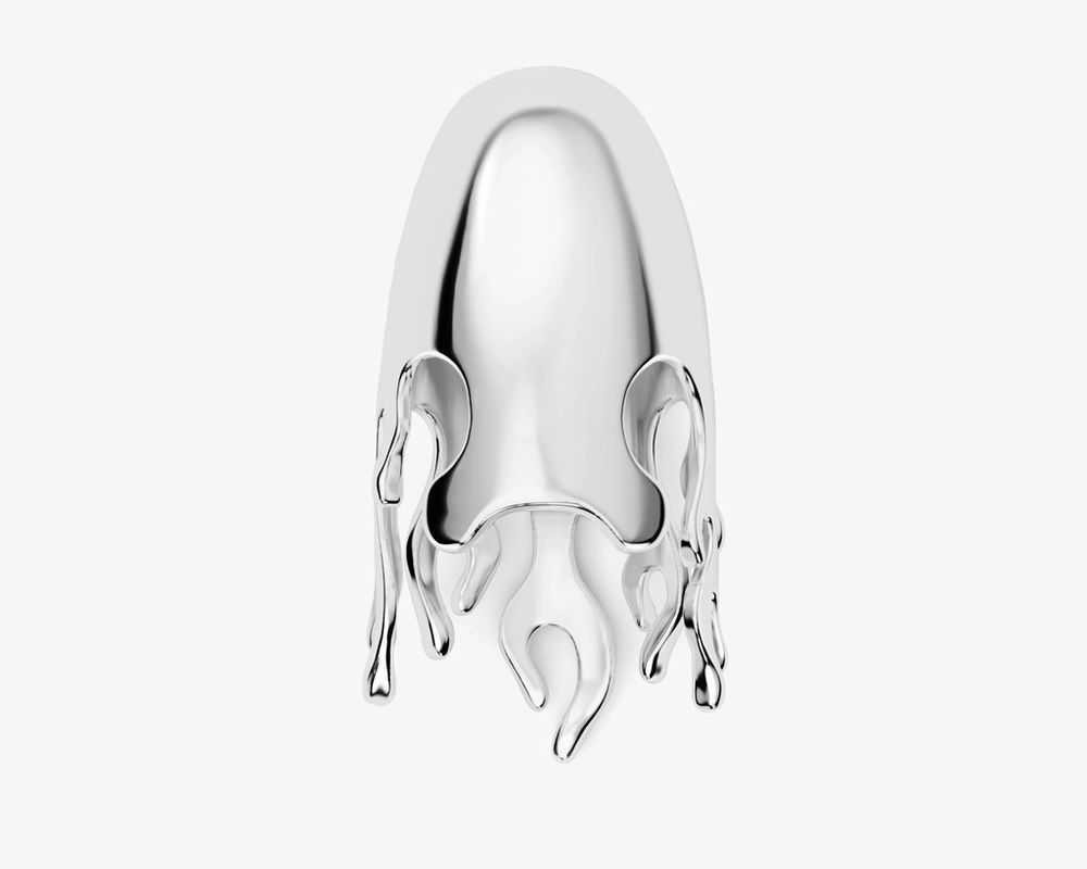 Its fluid silhouette follows the natural line of the fingertip, capturing the momentary energy of a rising flame while maintaining a refined, restrained elegance.