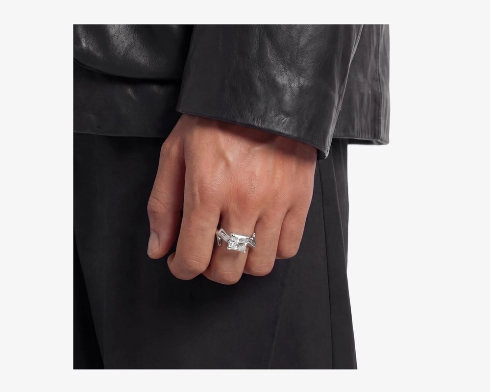 As light and shadow shift across the surface, the ring’s presence becomes increasingly pronounced with the wearer’s movement.