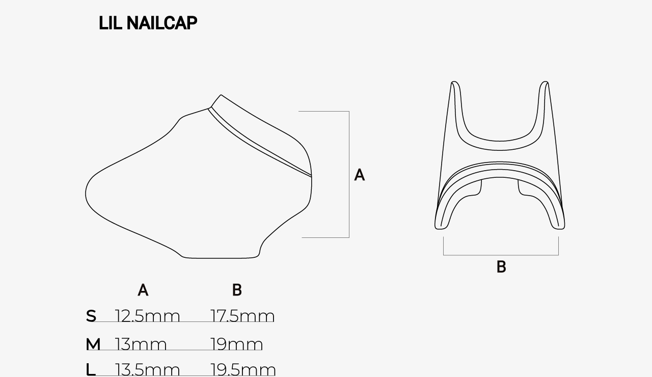 An open style nail cap designed to be gently tightened around the fingertip.