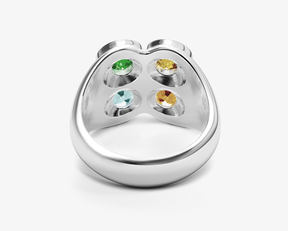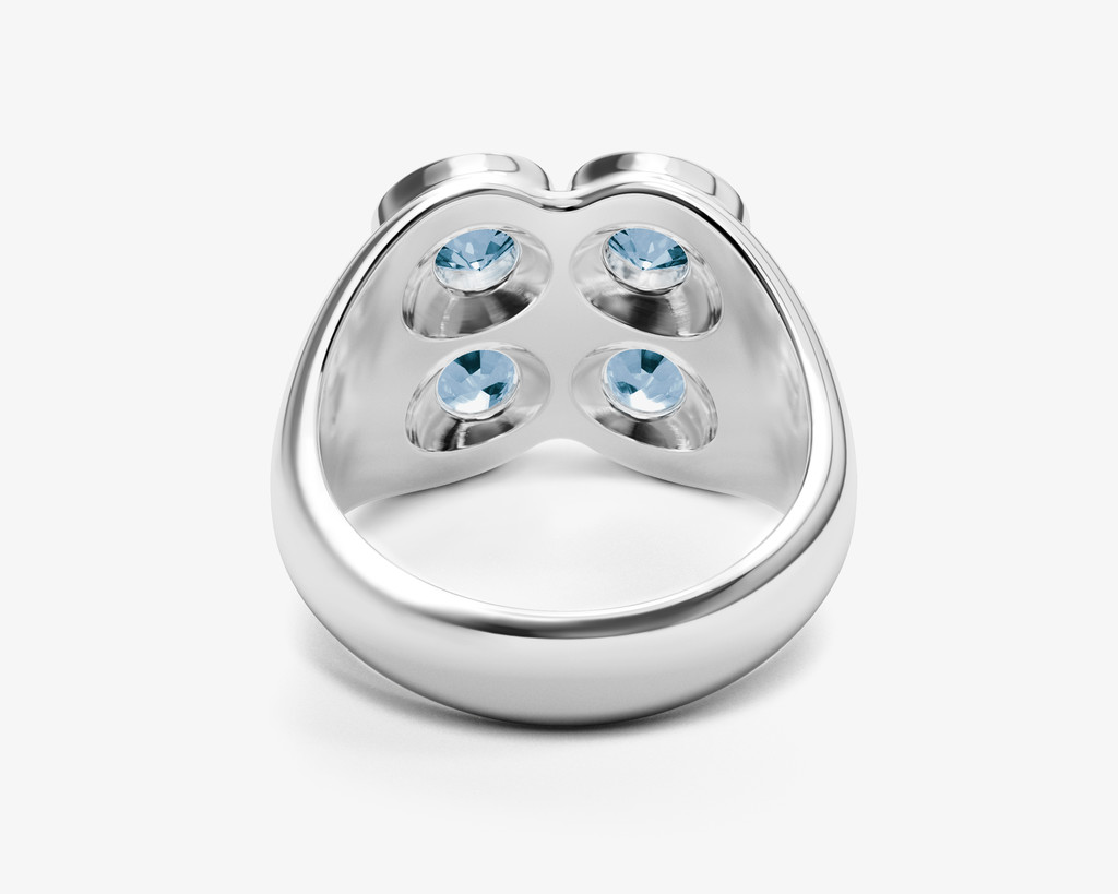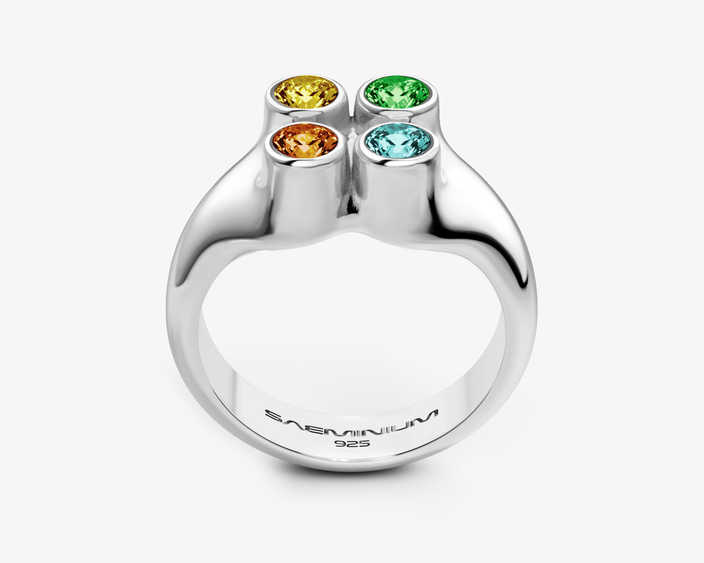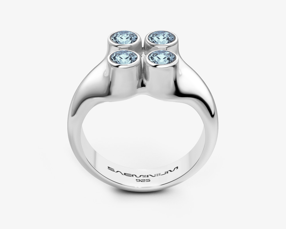 One of Saeminium’s signature designs, this ring is meticulously set with four gemstones.