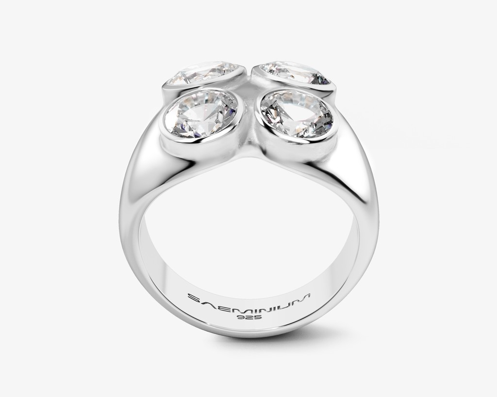 One of Saeminium’s signature designs, this ring is meticulously set with four gemstones.
