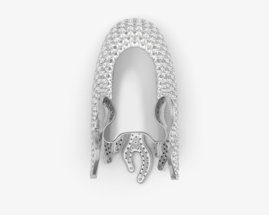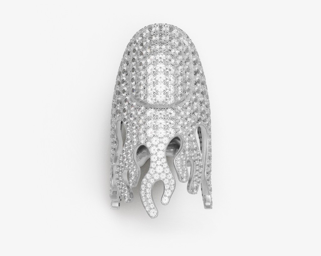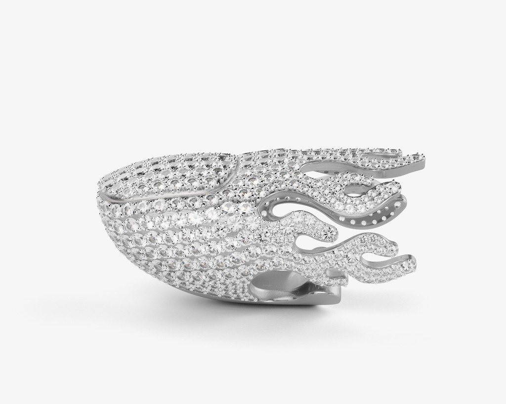 Saeminium signature item — a flame-shaped nail cap. A fingertip ring piece featuring a flame-inspired design concept.